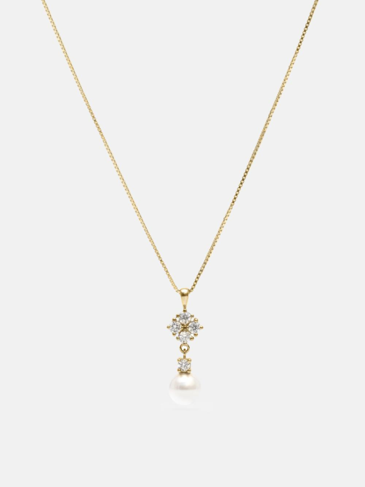 La collana Romy in oro è una collana delicata ed elegante con cristalli e una piccola perla che si muove dolcemente. Il design a forma di fiore dona uno stile classico e romantico. La collana è leggera da indossare e sta bene sia con abiti semplici che con abiti più particolari.