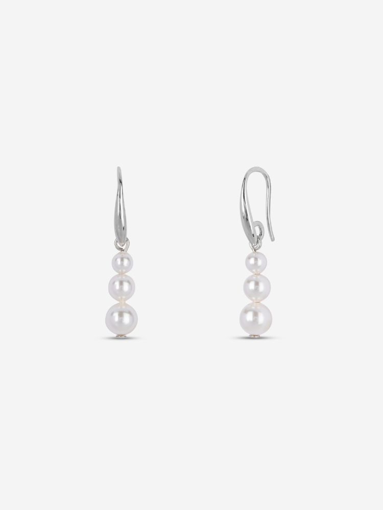 Orecchini lunghi in argento 925 con finitura rodiata e perle morbide che si muovono delicatamente sotto l’orecchio. Leggeri e femminili, con chiusura a gancio. Perfetti per matrimoni ed eventi eleganti.