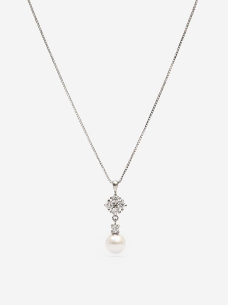 La collana Romy in argento ha cristalli e una piccola perla che dona un tocco fresco ed elegante. Il design semplice e senza tempo si abbina facilmente a diversi stili da sposa, dal moderno al classico. Leggera e comoda da indossare tutto il giorno.