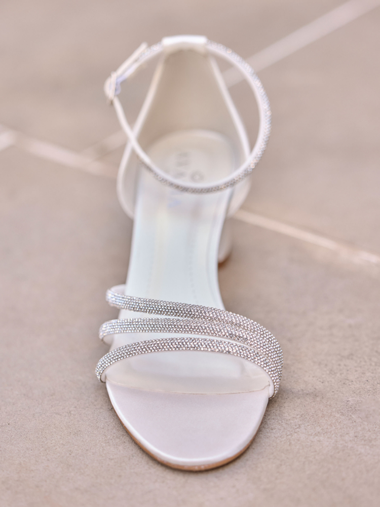 Bianco Evento Roxy sono sandali da sposa color ivory. Silhouette aperta con cinturini sottili in raso. Il tacco a blocco da 9 cm offre altezza e stabilità. Il cinturino alla caviglia assicura la calzata e la morbida fodera in schiuma aggiunge comfort.