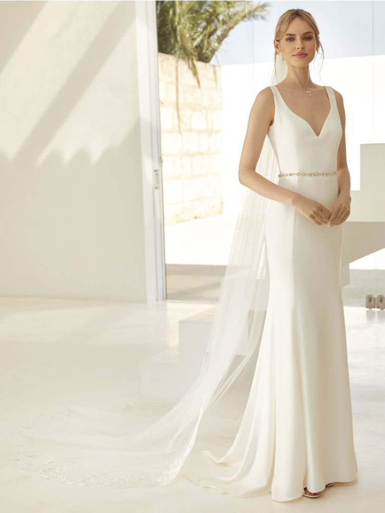 Questo elegante velo di Bianco Evento completerà il vostro look da sposa. Questo velo a strato singolo è realizzato in tulle daimond con un bordo di pizzo nella parte inferiore e un bordo tagliato nella parte superiore. Viene fornito con un pettine per facilitare il posizionamento del velo tra i capelli.