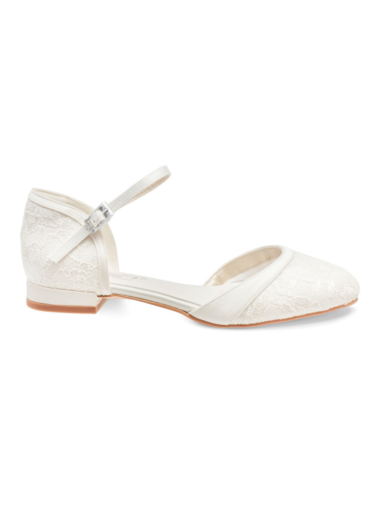 Lana è un esclusivo scarpe da sposa, realizzate a mano e dallo stile classico. Le sandali sono fatti di raso con lacci e sono molto comodi grazie al tacco piatto. Questa sandalia da sposa si abbina a qualsiasi vestito da sposa!