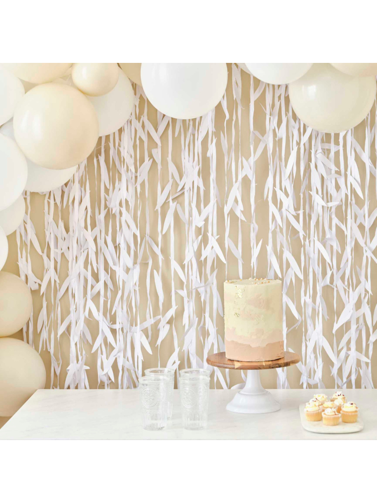 Lo splendido fondale a foglie bianche completa la vostra sala come centrotavola scenografico. Il colore bianco è un fondale versatile da usare come sfondo per il photobooth o per il ricevimento.