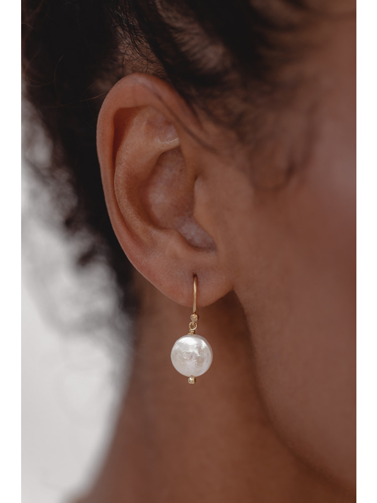 Questi orecchini, con pendenti di perle piatte a forma di moneta "Coin", sono ideali per le spose che desiderano fondere tradizione e modernità. La forma particolare di queste perle conferisce un'eleganza rinfrescante, dimostrando quanto possano essere innovativi e unici gli orecchini di perle.