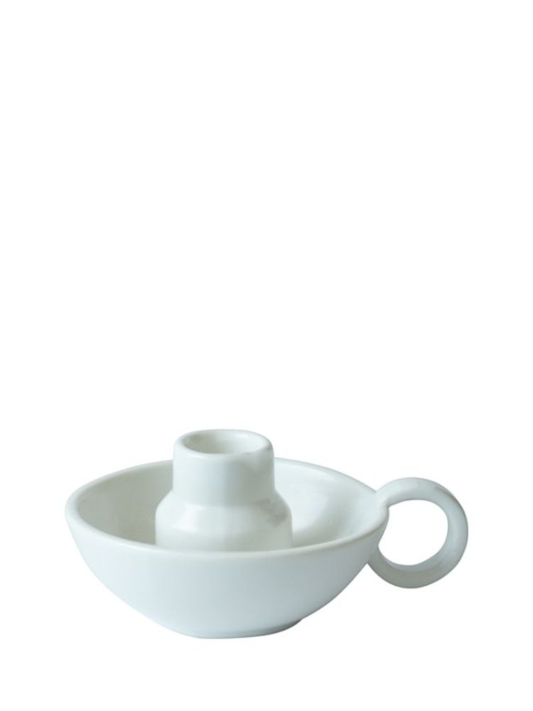 Realizzato a mano in ceramica liscia bianco satinato, il portacandela Chris misura 6 x 14 cm e accoglie con stabilità una candela alta; la sua silhouette minimal bilancia linee moderne e grazia senza tempo, donando una presenza rassicurante a ogni tavolo.