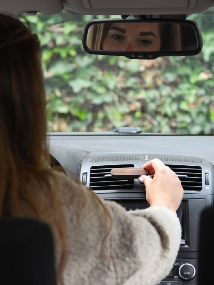 Basta far cadere alcune gocce sul bastoncino di cotone alloggiato nel supporto e posizionarlo sulla bocchetta di ventilazione: la fragranza si diffonde con delicatezza, accompagnando la guida con una sensazione luminosa e pulita.