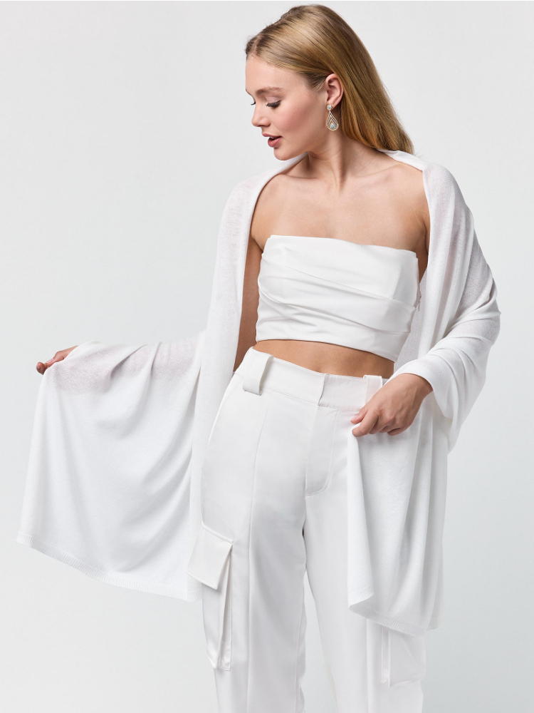 Splendida stola color avorio S167 di Poirier. Questa stola può essere indossata in vari modi, ad esempio sulle spalle.