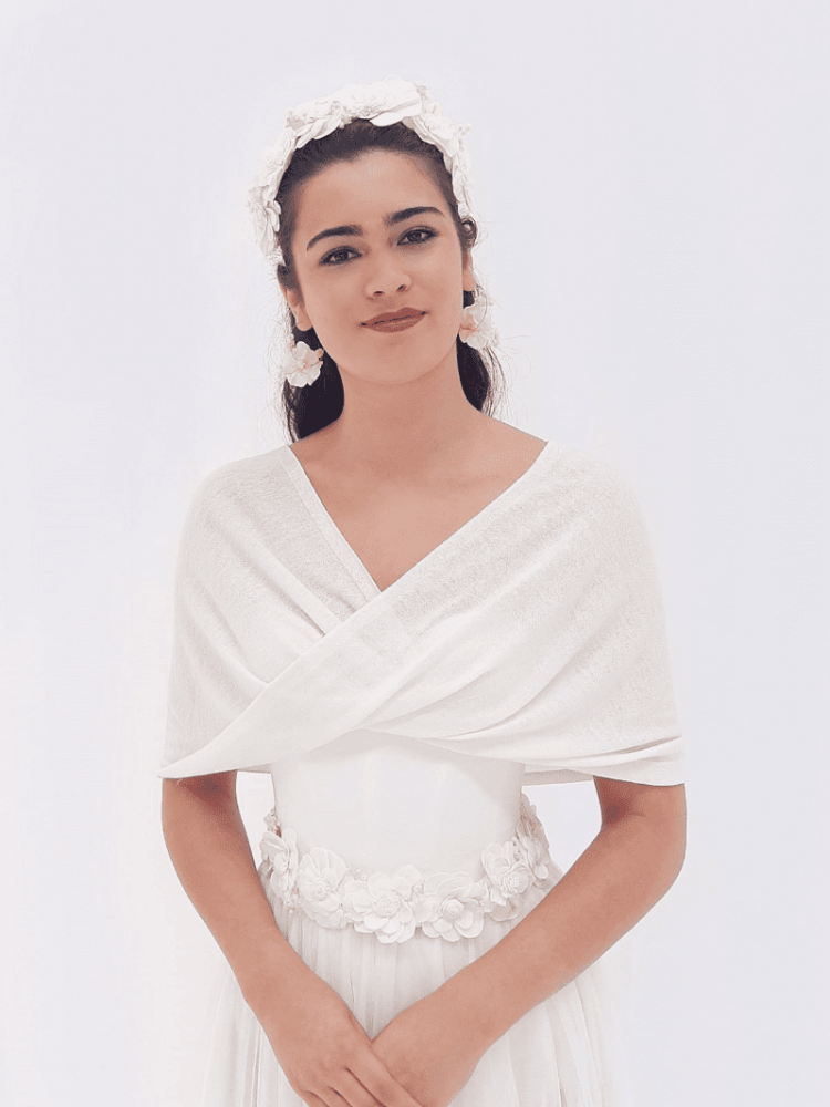 Scegliete il modello S187 della collezione Romantic di Poirier, dal colore avorio e dalla linea morbida e fluida. Questa stola è intrecciata a metà fronte. La stola è realizzata in un tessuto composito (16% lana, 20% acrilico, 20% nylon e 44% poliestere). Grazie al suo colore neutro avorio, questa stola può essere abbinata a diversi tipi di abiti da sposa. Questa bellissima stola lega davvero il vostro look nuziale. La taglia di questa stola è "one size fits all".