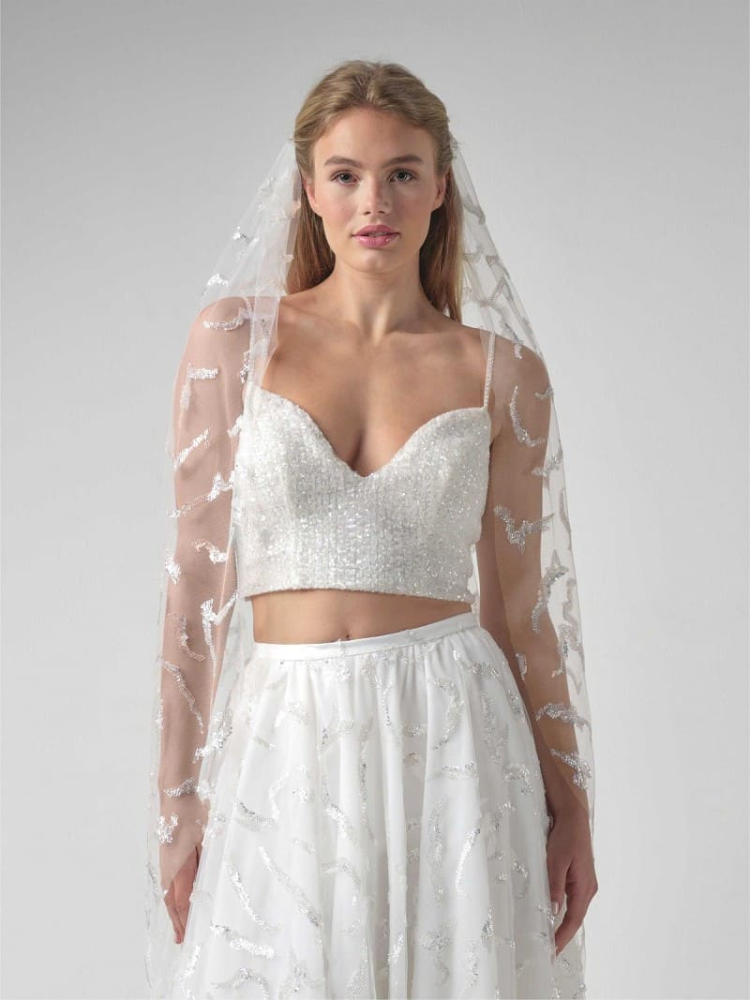 Decorazione: Paillettes argentate a forma di onda su tutto il velo