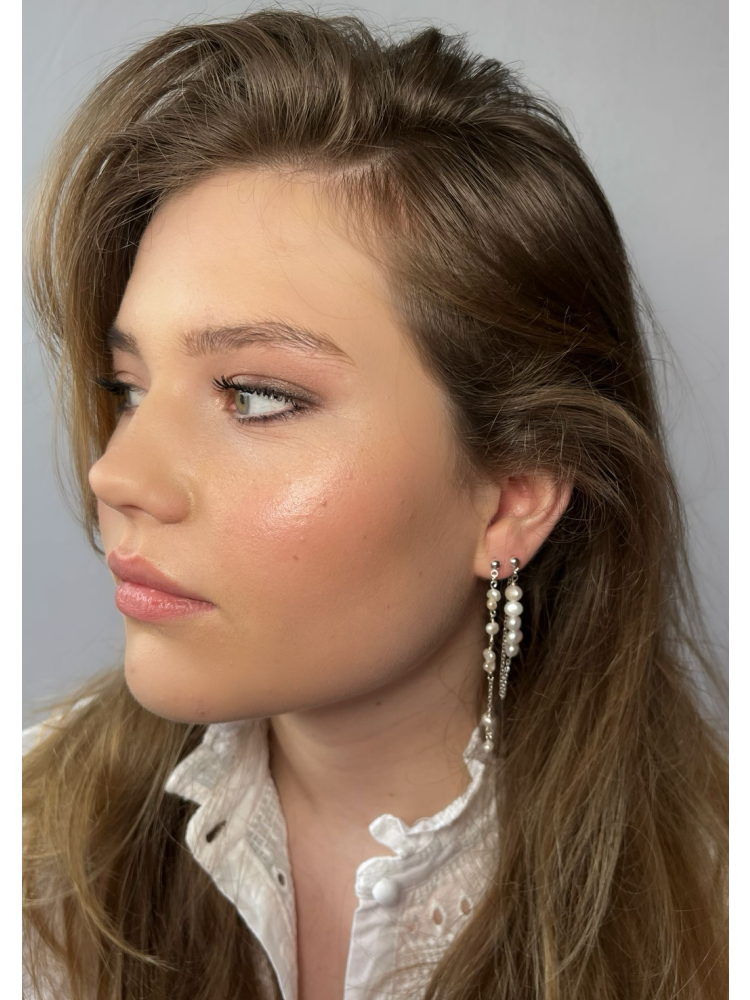 Aggiungi un tocco distintivo al tuo look da sposa con gli orecchini Muse Silver di Sally Jane Bridal. Perle d'acqua dolce montate su ottone placcato in argento con sottili dettagli a catena: un design lungo che unisce audacia e movimento a un'eleganza senza tempo, pensato per la sposa contemporanea.